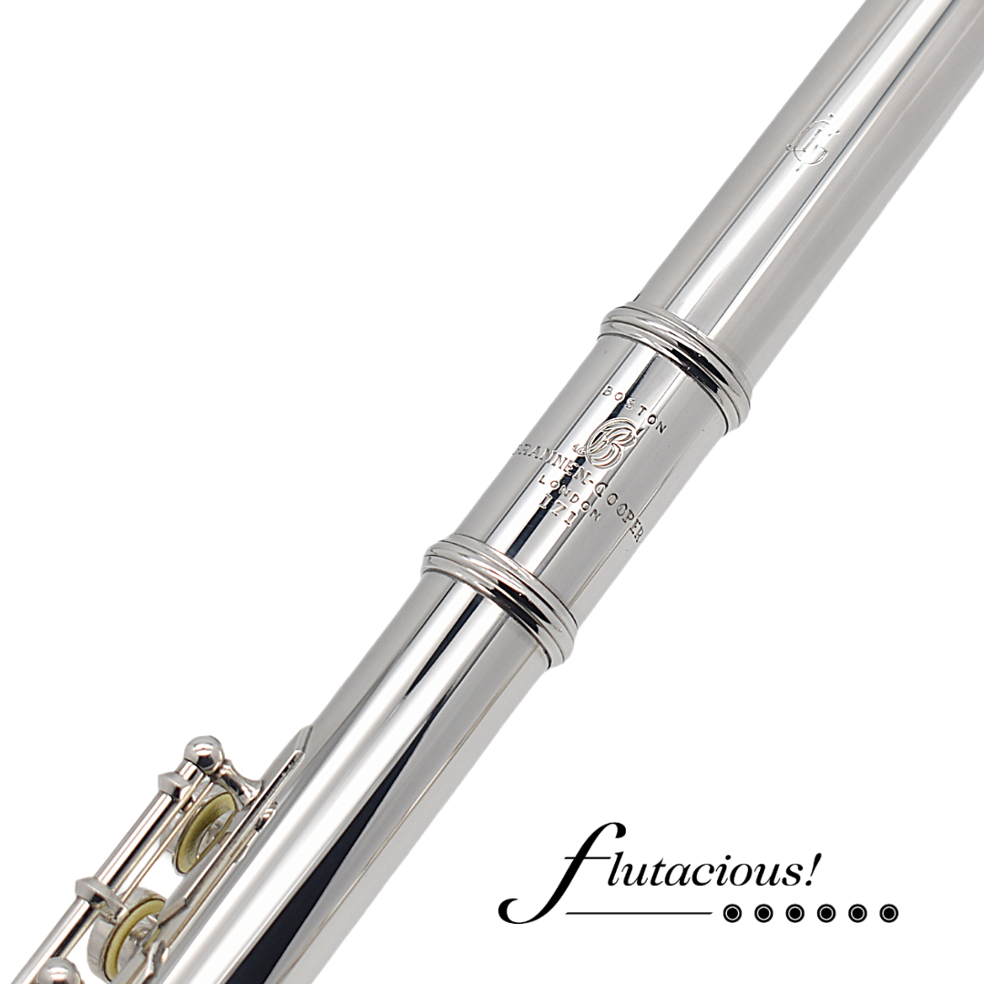 A beautifully maintained Brannen-Cooper with a sterling silver Jack Goosman headjoint, silver body/mechanism, .014" tubing, and soldered tone holes. Features include inline G, low B footjoint, and D# roller. Recently given a new overhaul with synthetic pads—this flute is tight, responsive, and ready to play!